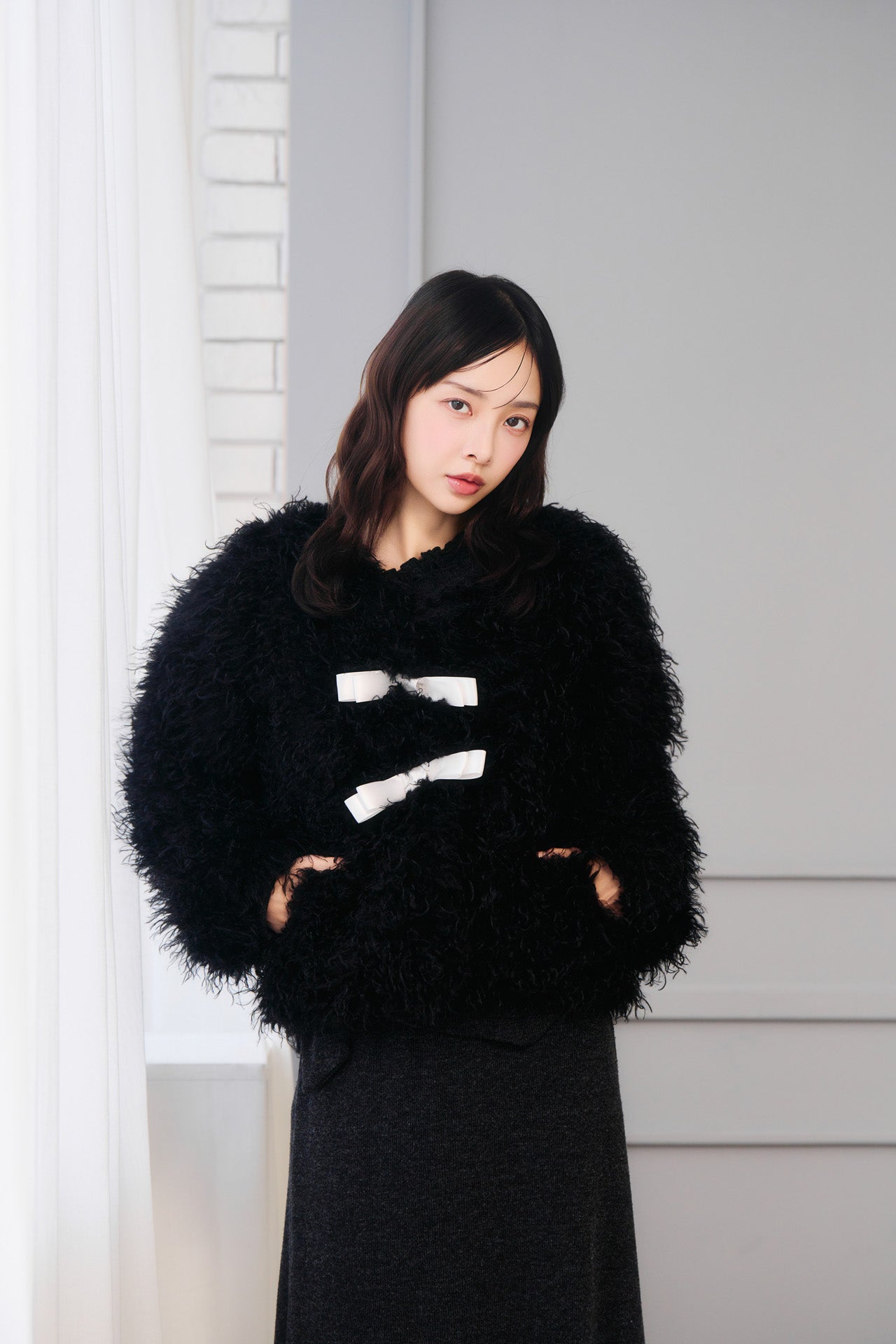 毛足の長いファー素材が光を柔らかく反射し、写真映え・実物ともに高級感のある仕上がり。