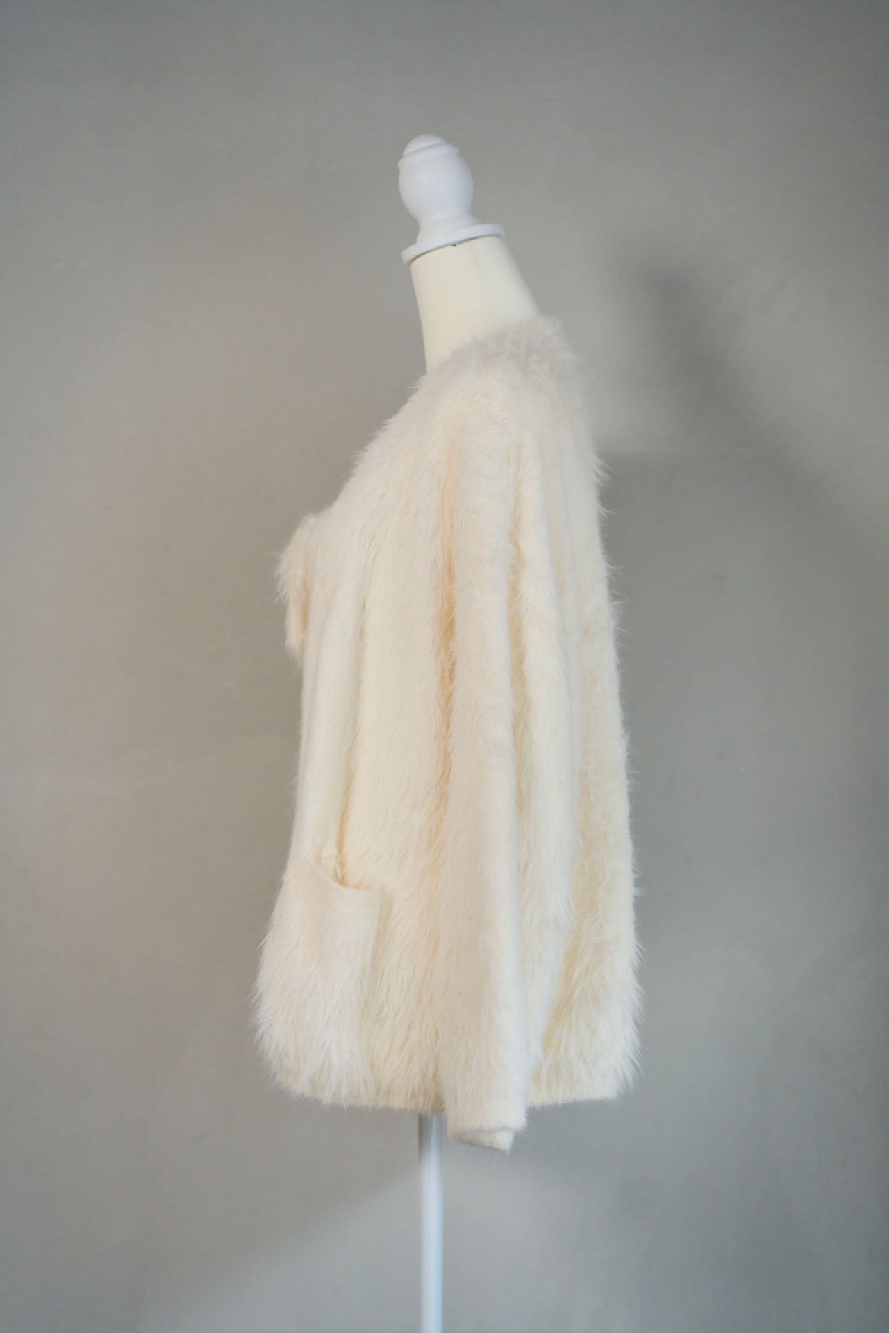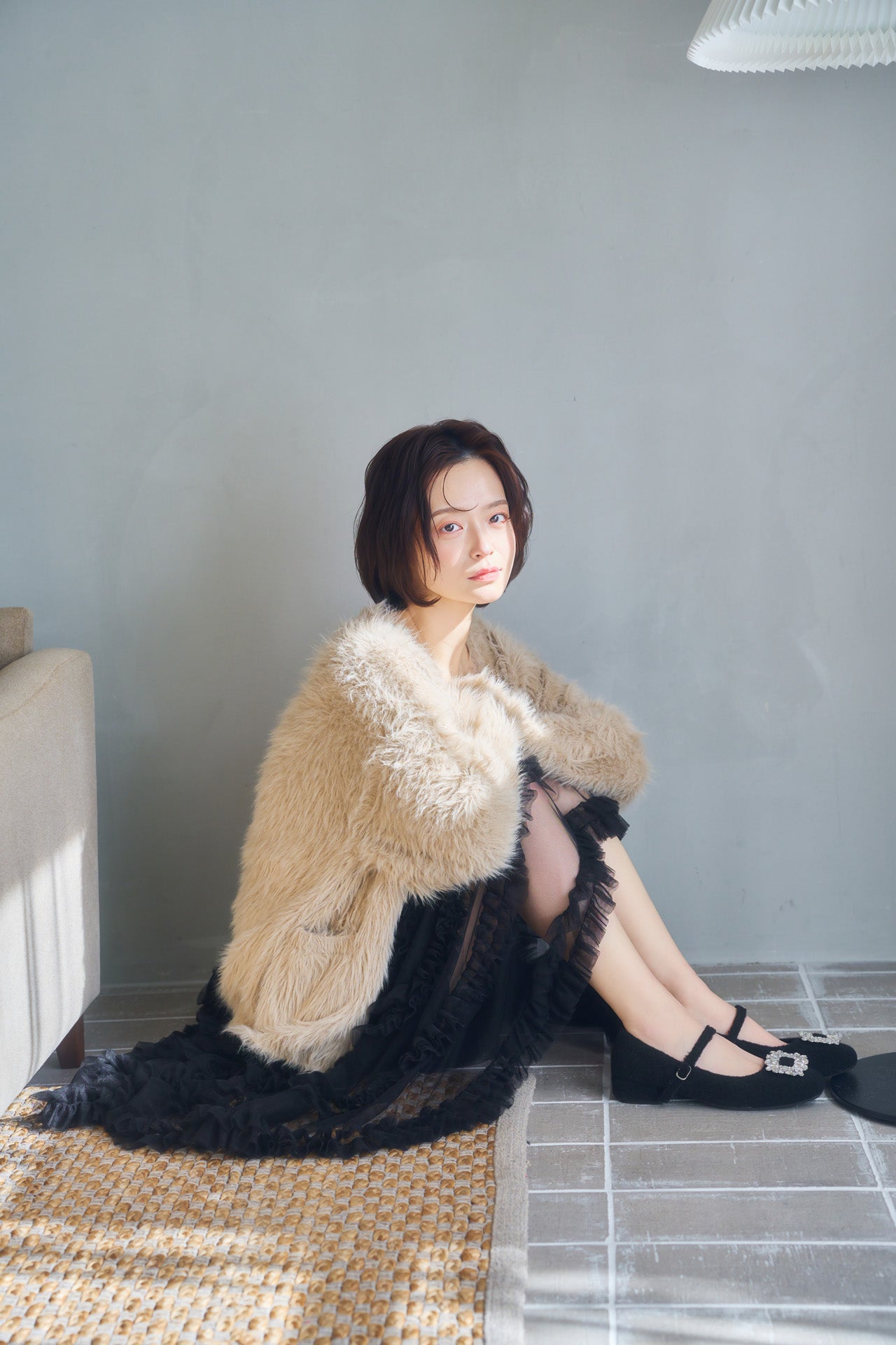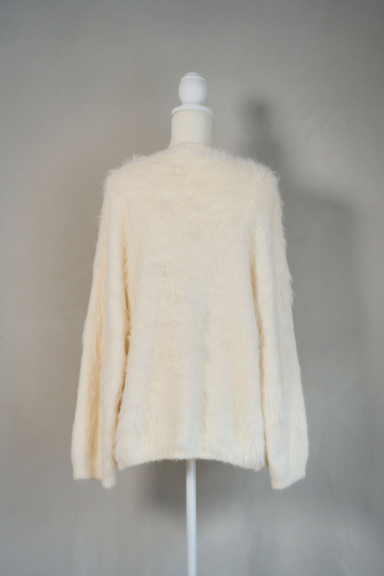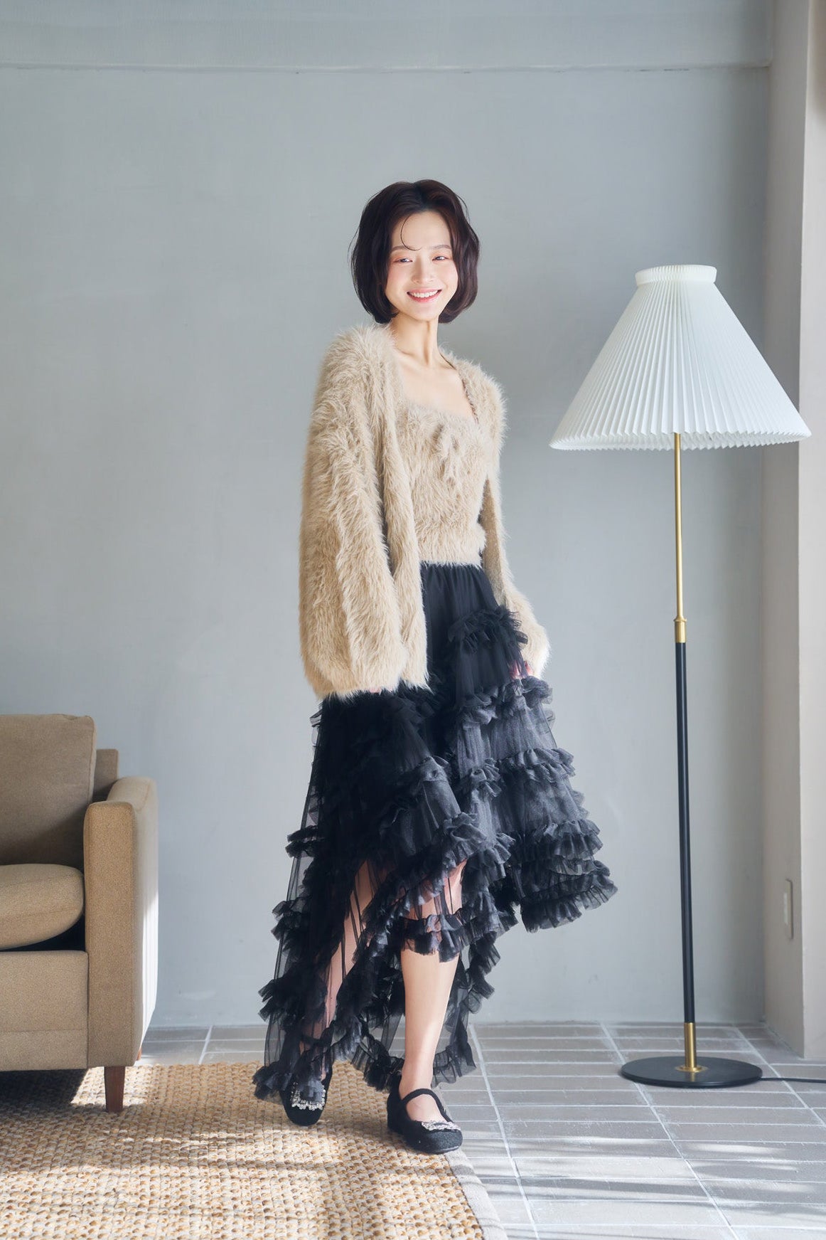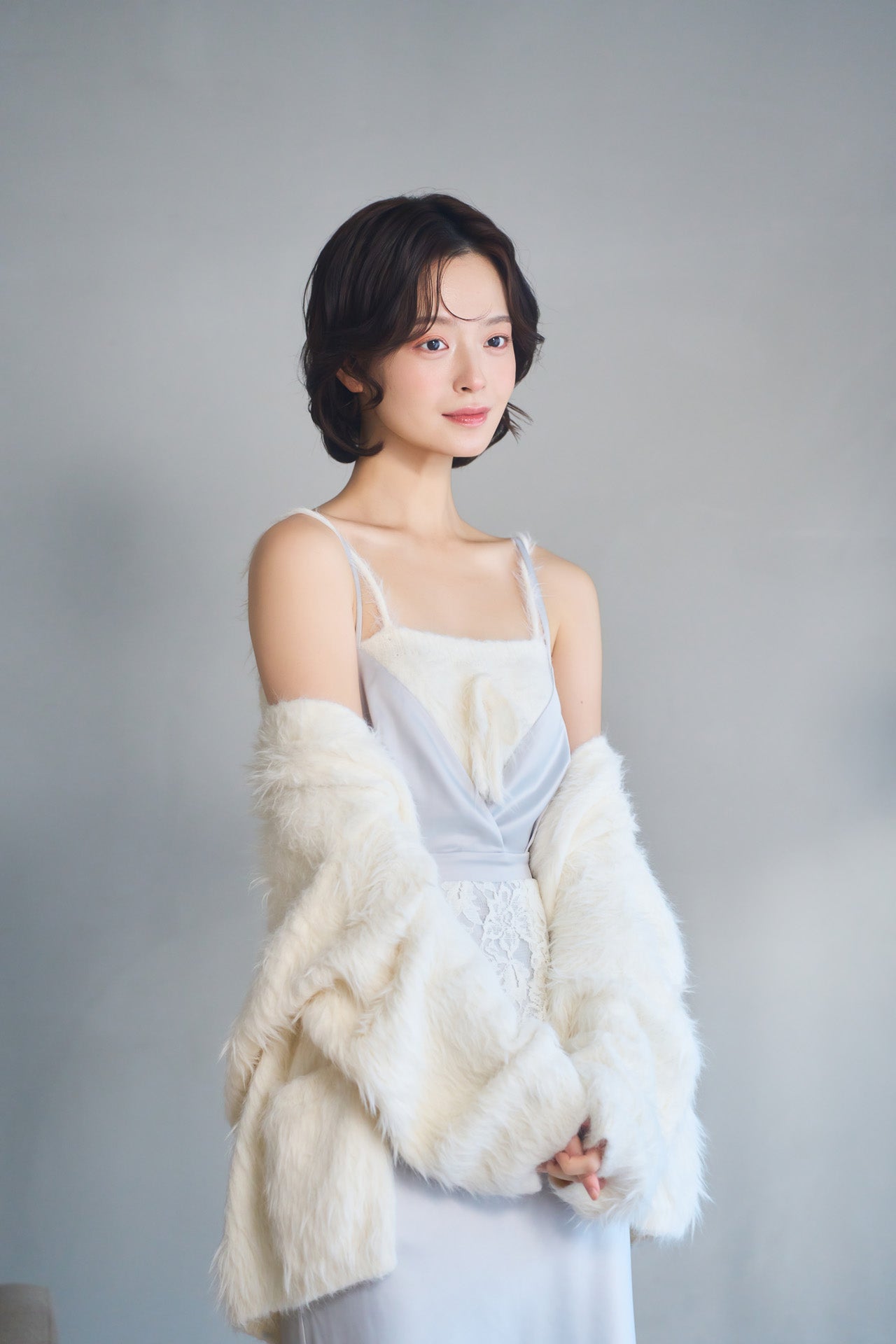うさぎの毛のように柔らかく、触れたくなるシャギーニット素材を使用し、胸元にはリボンをあしらったキャミソールと、ゆるっと羽織れるカーディガンのセット。