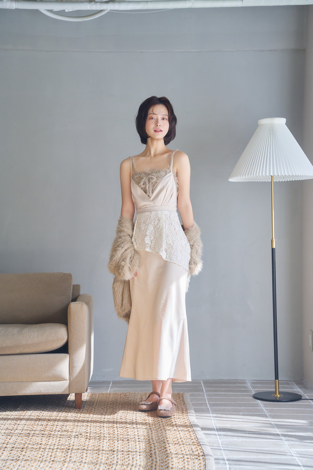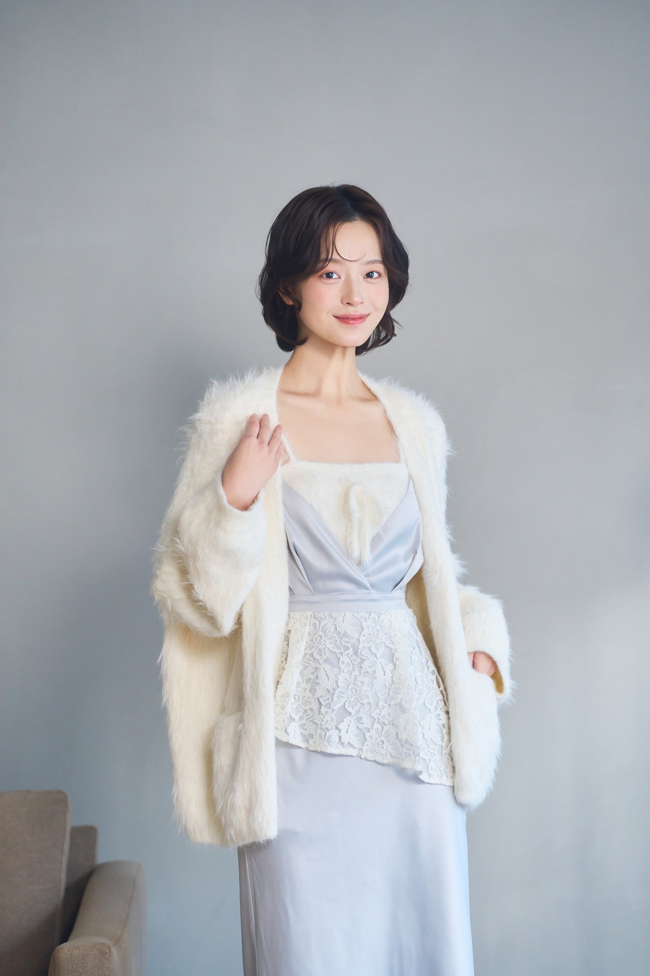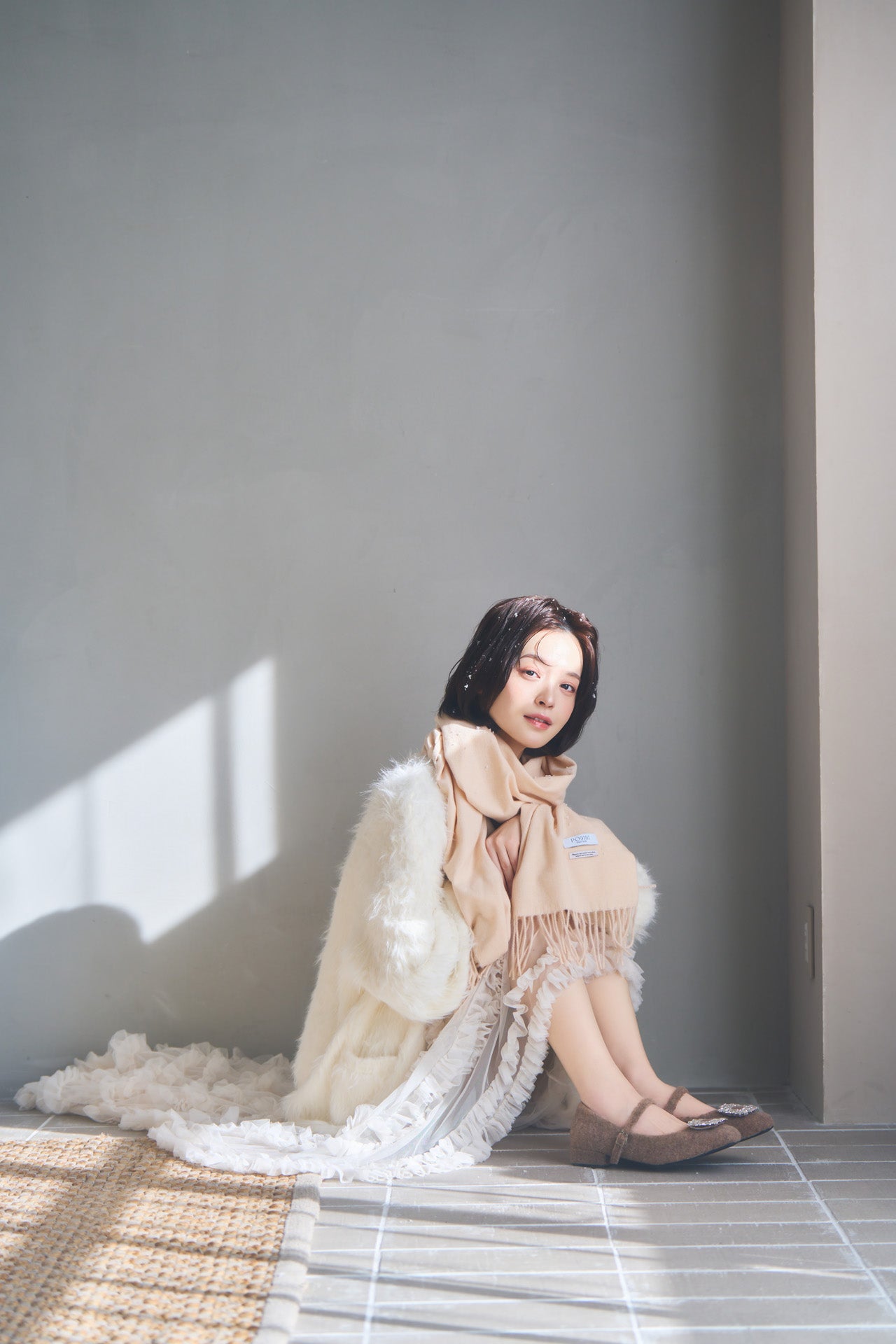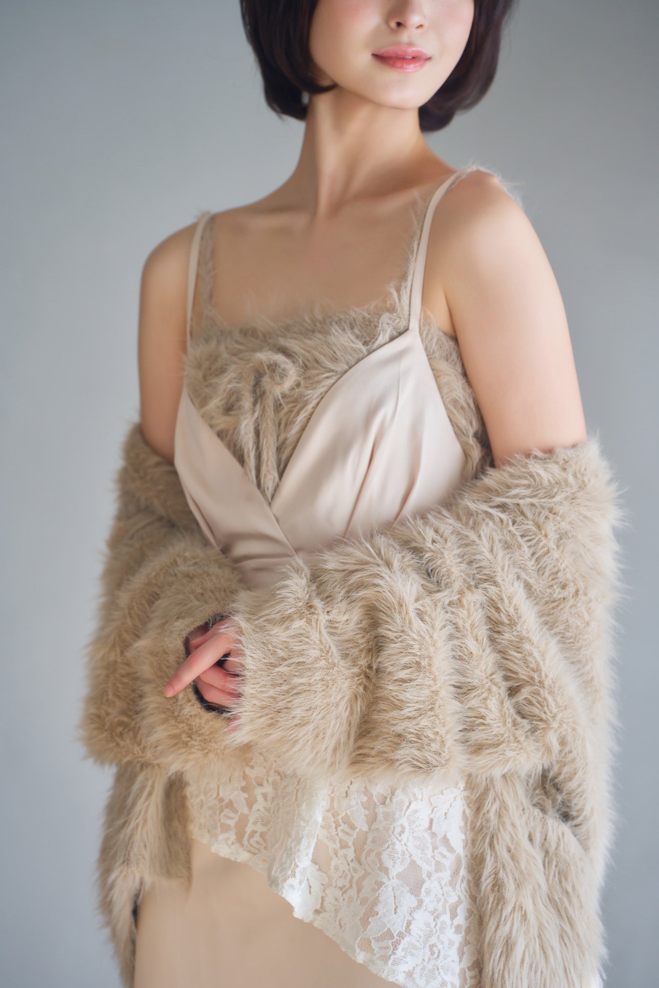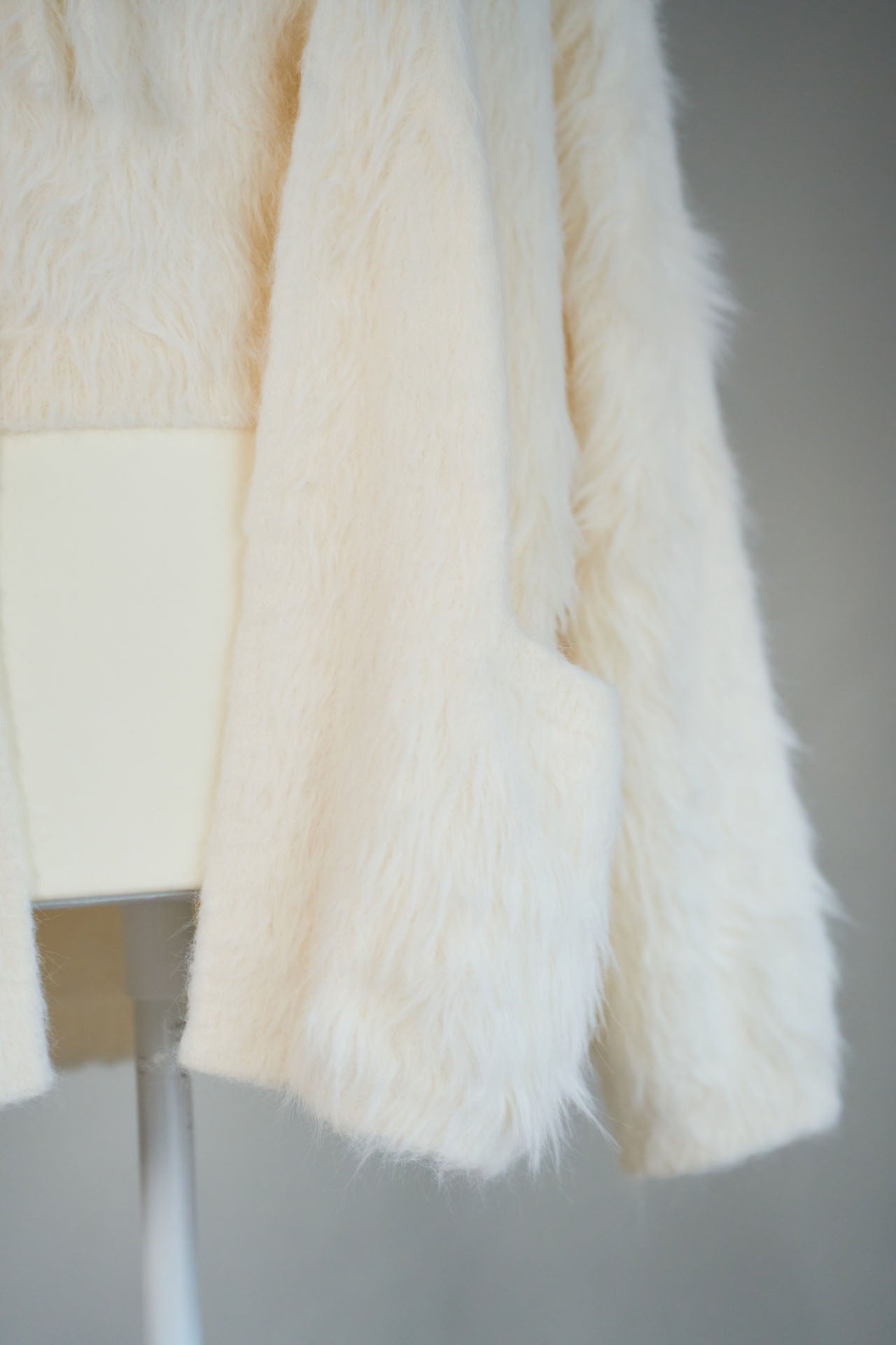 うさぎの毛のように柔らかく、触れたくなるシャギーニット素材を使用し、胸元にはリボンをあしらったキャミソールと、ゆるっと羽織れるカーディガンのセット。